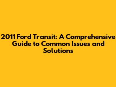 2011 Ford Transit: Common Issues And Solutions