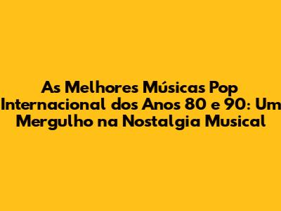 As músicas pop internacional dos anos 80 e 90 foram muito mais do que simples sucessos nas paradas de sucesso. Elas foram a trilha sonora de uma época, que definiram gerações e continuam a encantar e inspirar pessoas de todas as idades. Ao revisitar esses sucessos, podemos reviver emoções, relembrar momentos e celebrar a nostalgia de uma época inesquecível. Que a música continue a nos unir, a nos emocionar e a nos transportar para outros tempos. E que a nostalgia continue a ser a nossa melhor companhia!