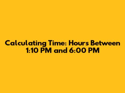 Hey guys! Ever wondered about calculating time? It's something we deal with every single day, from figuring out our work schedules to planning our weekend adventures. Today, we're going to tackle a specific time calculation: figuring out how many hours are between 1:10 PM and 6:00 PM. It might seem simple, but let's break it down and make sure we all understand the steps involved. Getting a solid grasp on time calculations can be super useful in various aspects of life, from managing your daily tasks effectively to making sure you're on time for that important meeting. We'll go through a straightforward approach, step by step, so you can easily figure out the hours between any two given times. By the end of this, you’ll be a pro at this kind of calculation! No more guessing or getting confused – just clear, concise time understanding. So, let's dive in and make time calculations a breeze!