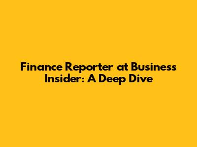 Finance Reporter At Business Insider: A Deep Dive