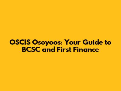 OSCIS Osoyoos: Navigating BCSC And First Finance