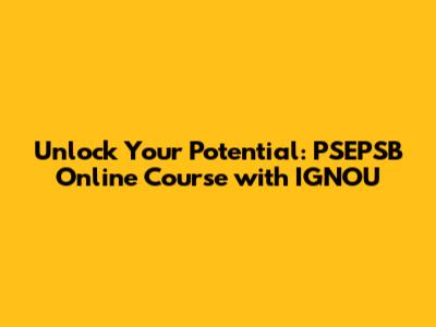 Unlock Your Potential: PSEPSB Online Course With IGNOU