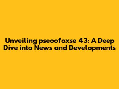 Unlocking Insights: Pseoofoxse 43 News & Updates