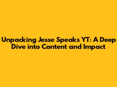 Who is Jesse Speaks YT and What Makes Their Content Stand Out?