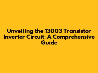 Unveiling The 13003 Transistor Inverter Circuit: A Comprehensive Guide